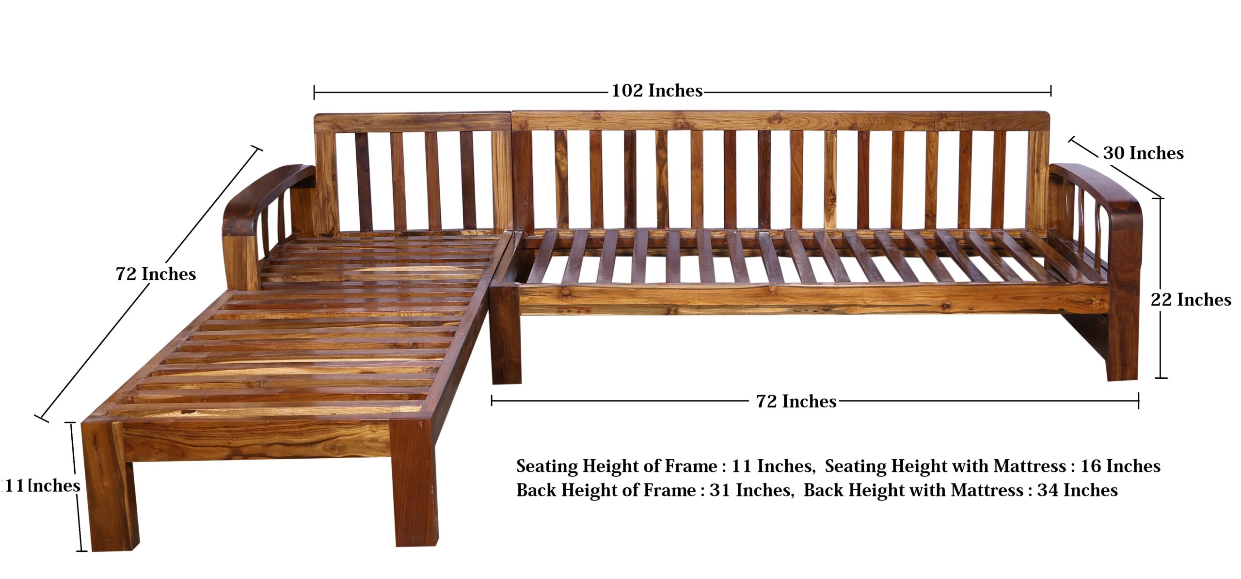 Frame Seating Height : 16 Inch, Seating Height With Mattress : 20 Inches