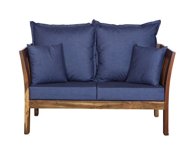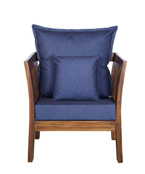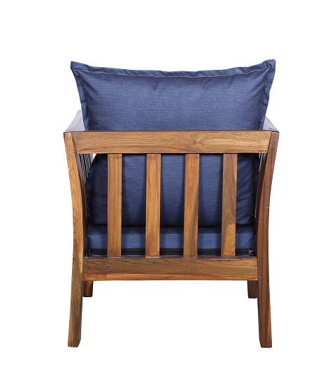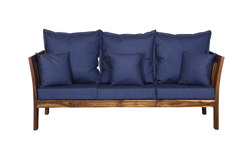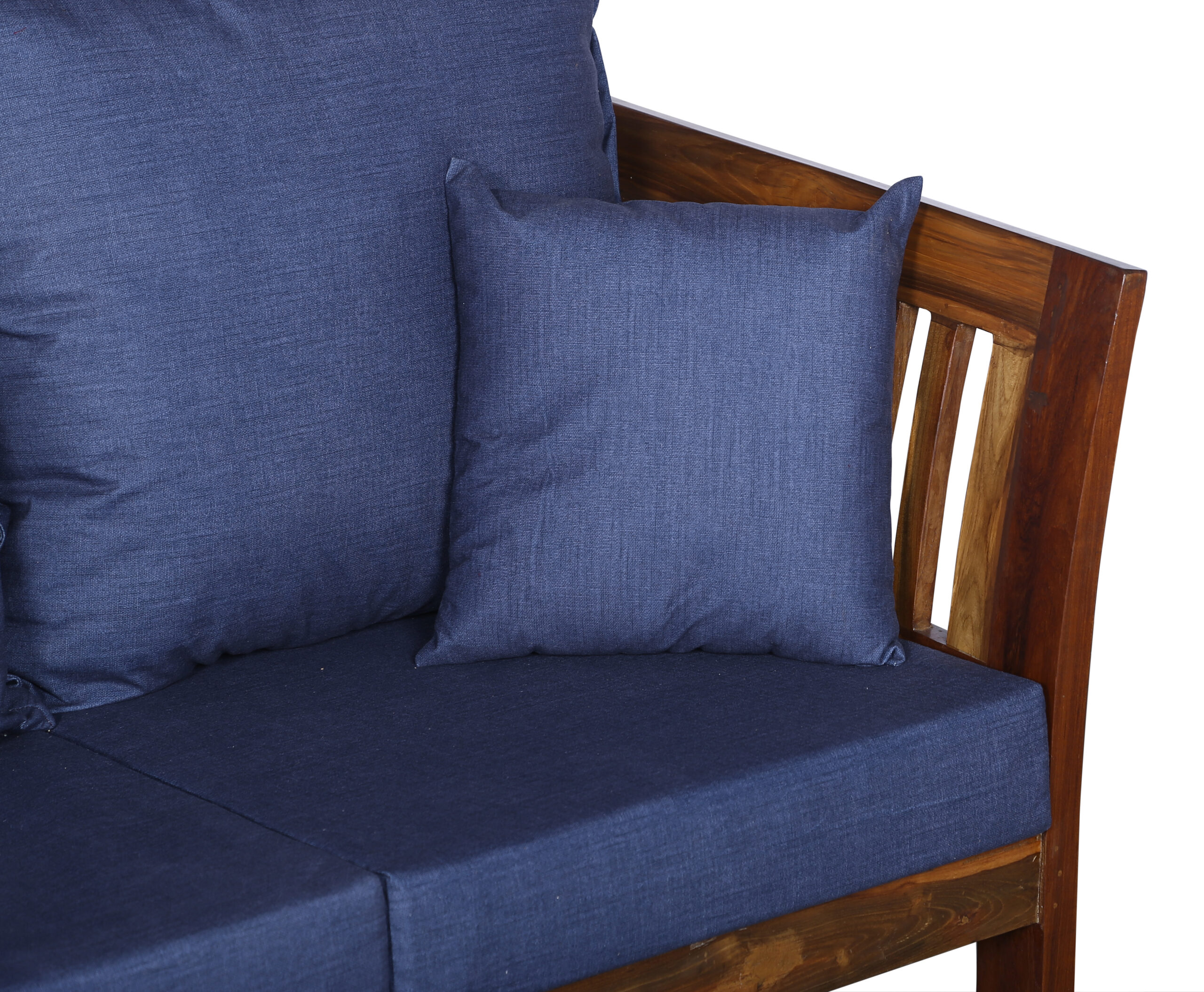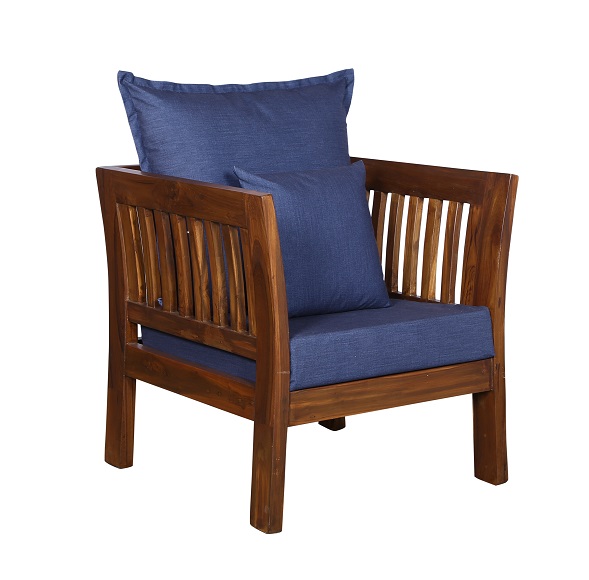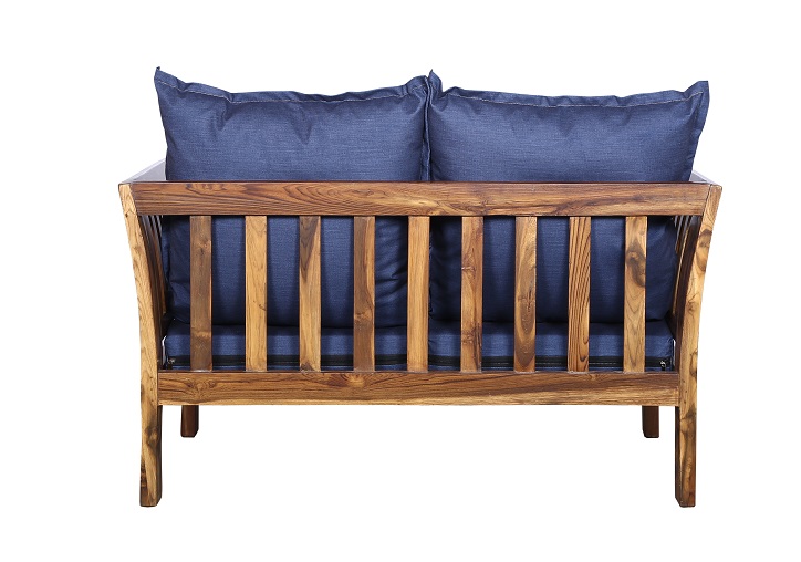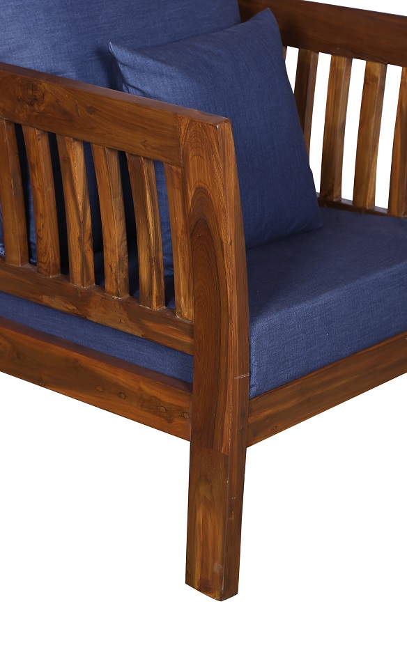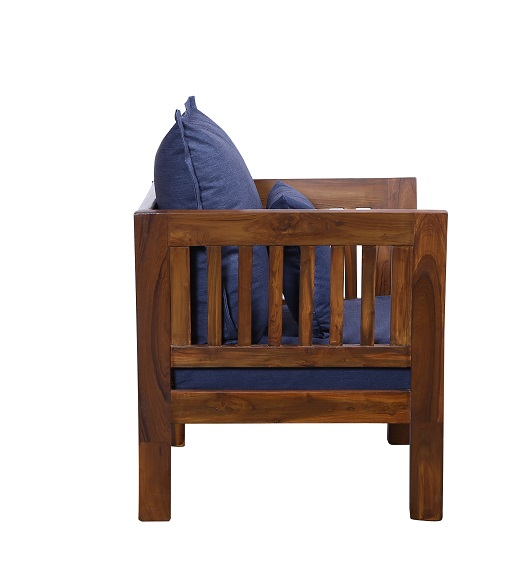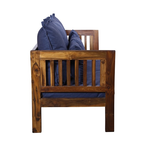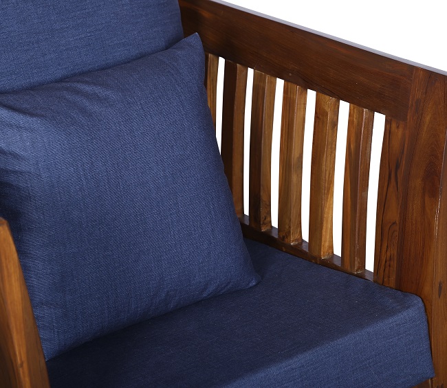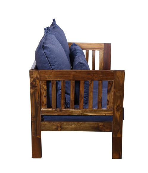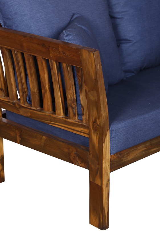- Color: Wooden Brown |Cushion: Blue | Pillows : Blue