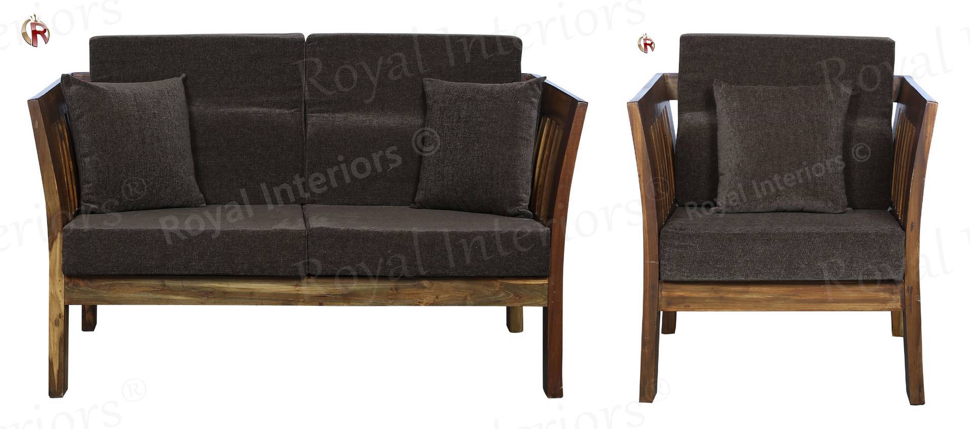 • Color: Wooden Brown |Cushion: Gray | Pillows : Gray