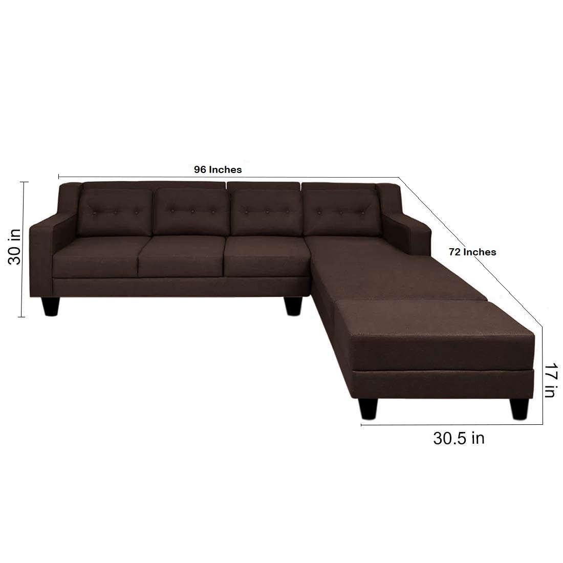 - Sofa Dimensions- L-96 In, D- 72 In, H- 30 In