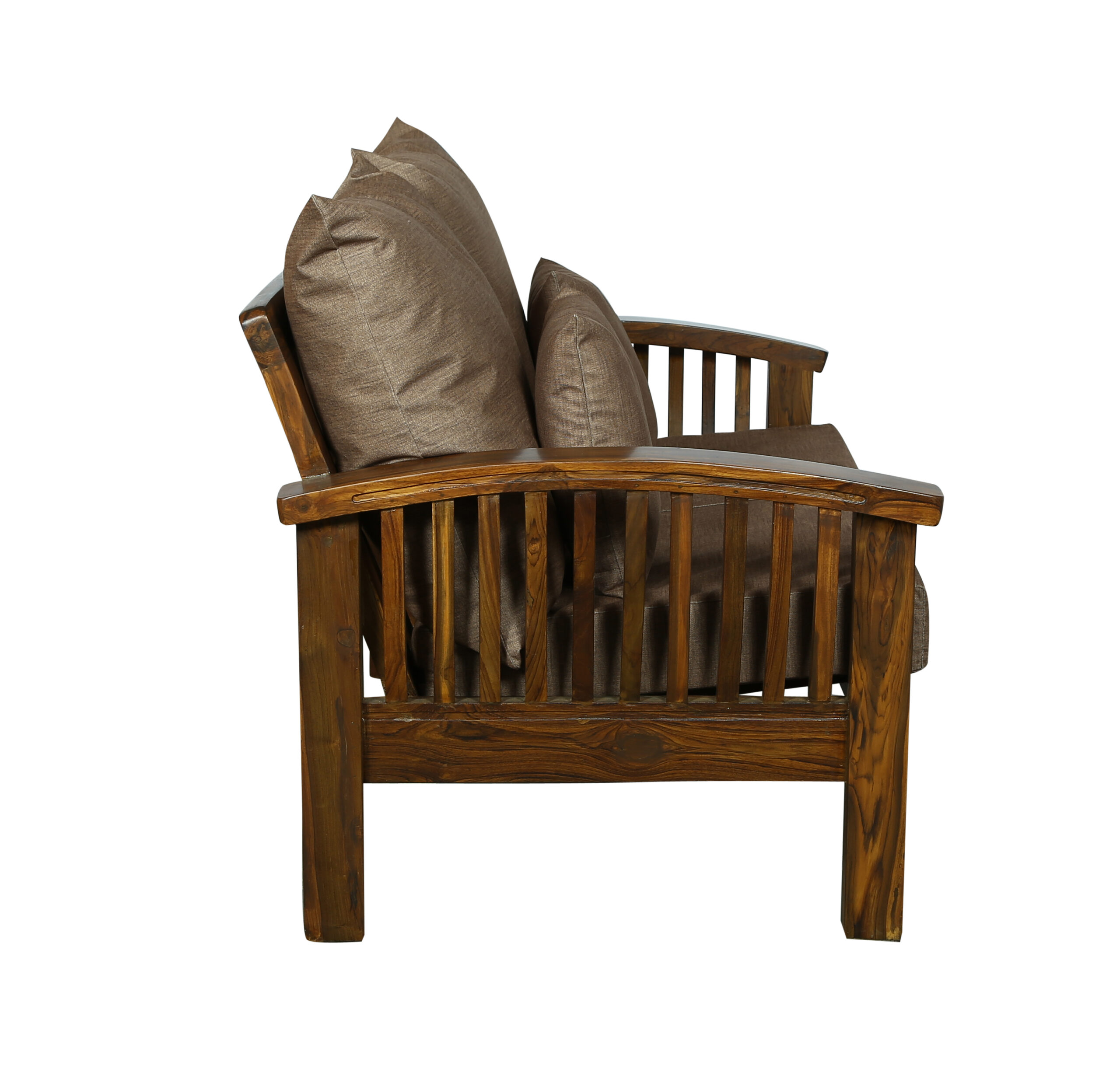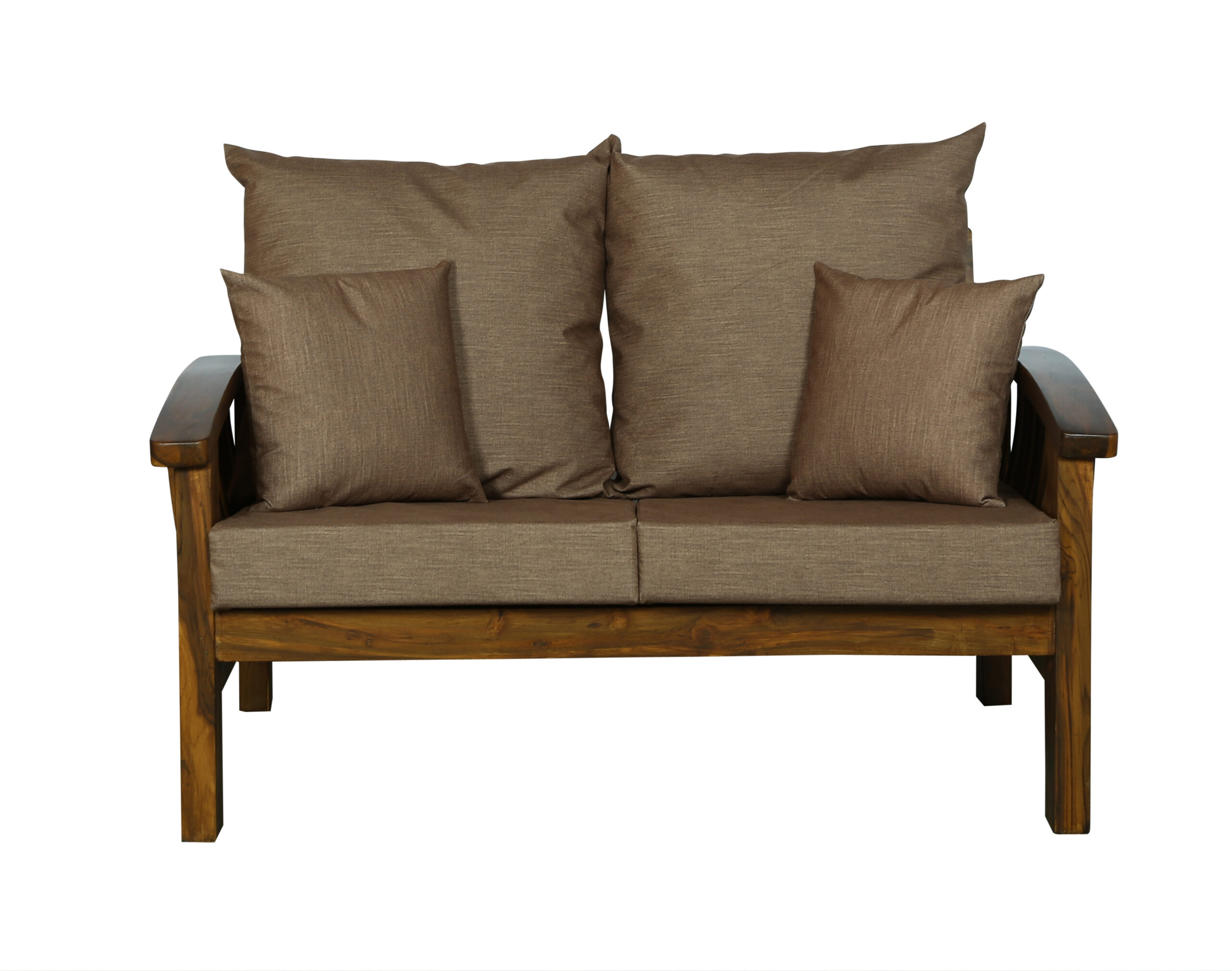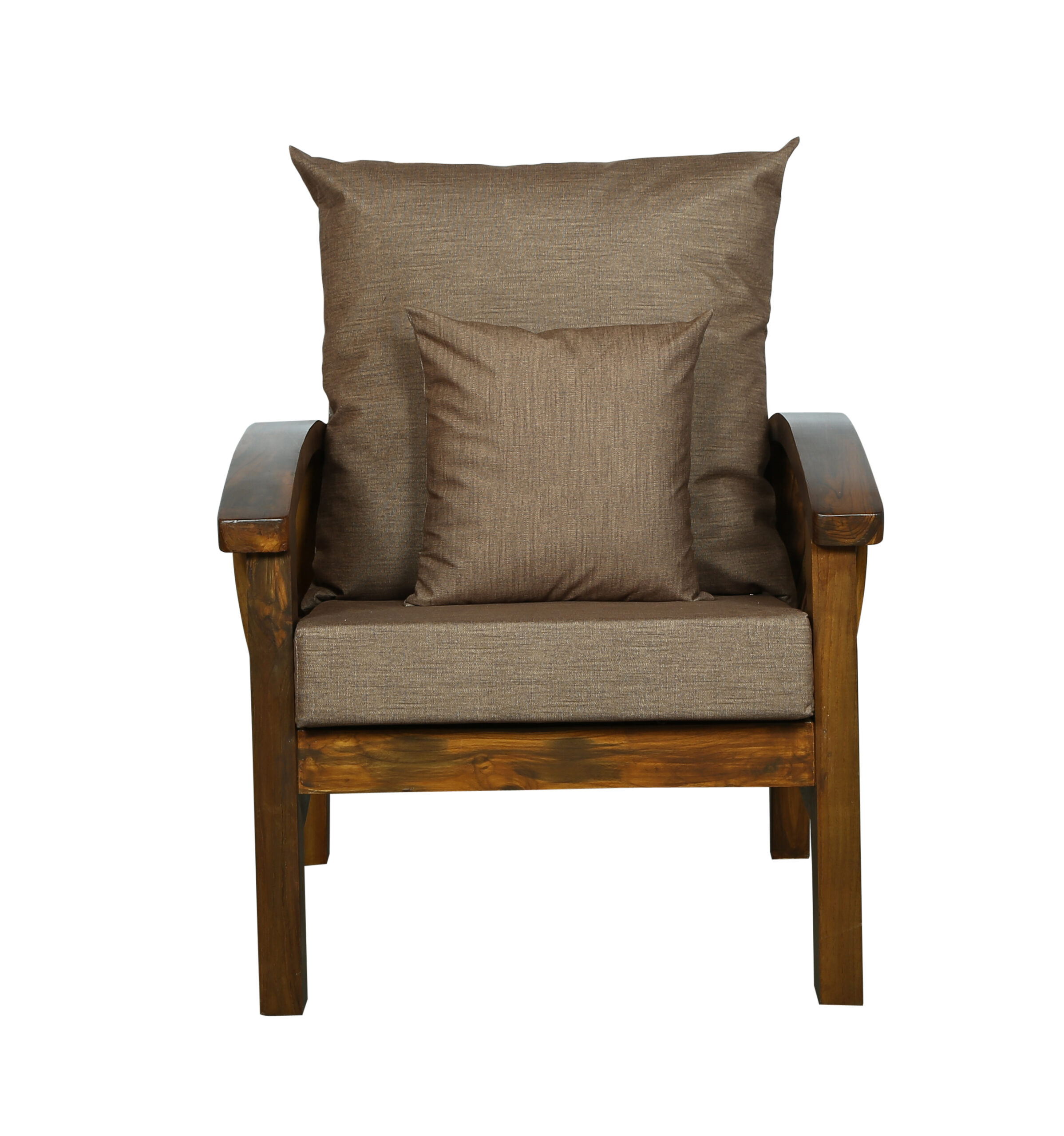 - Color: Wooden Brown |Cushion: Brown | Pillows : Brown