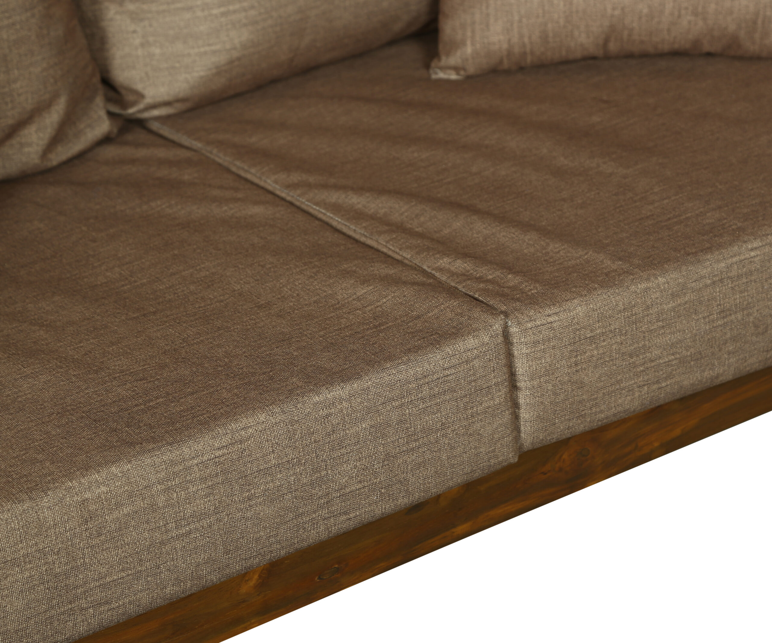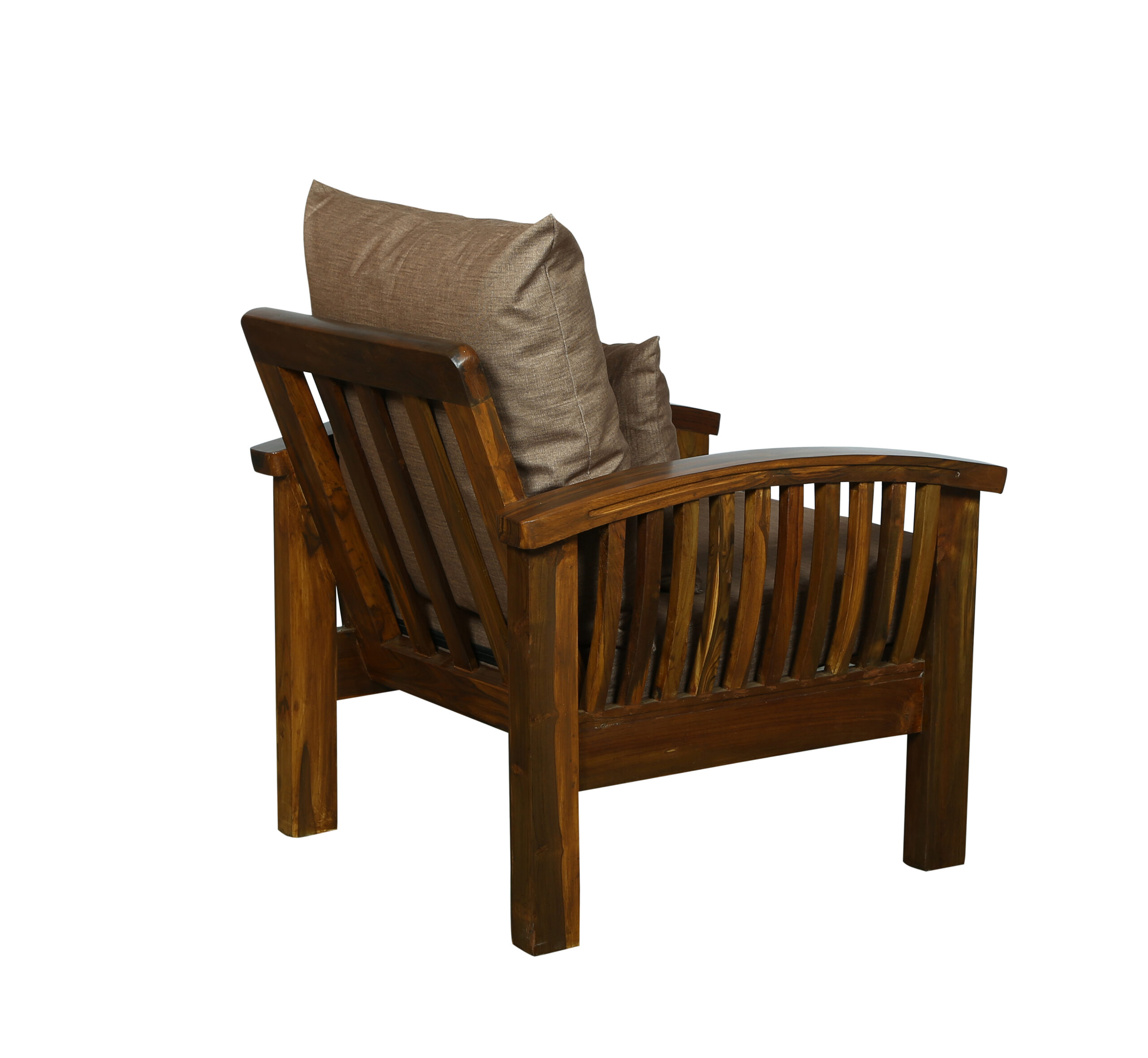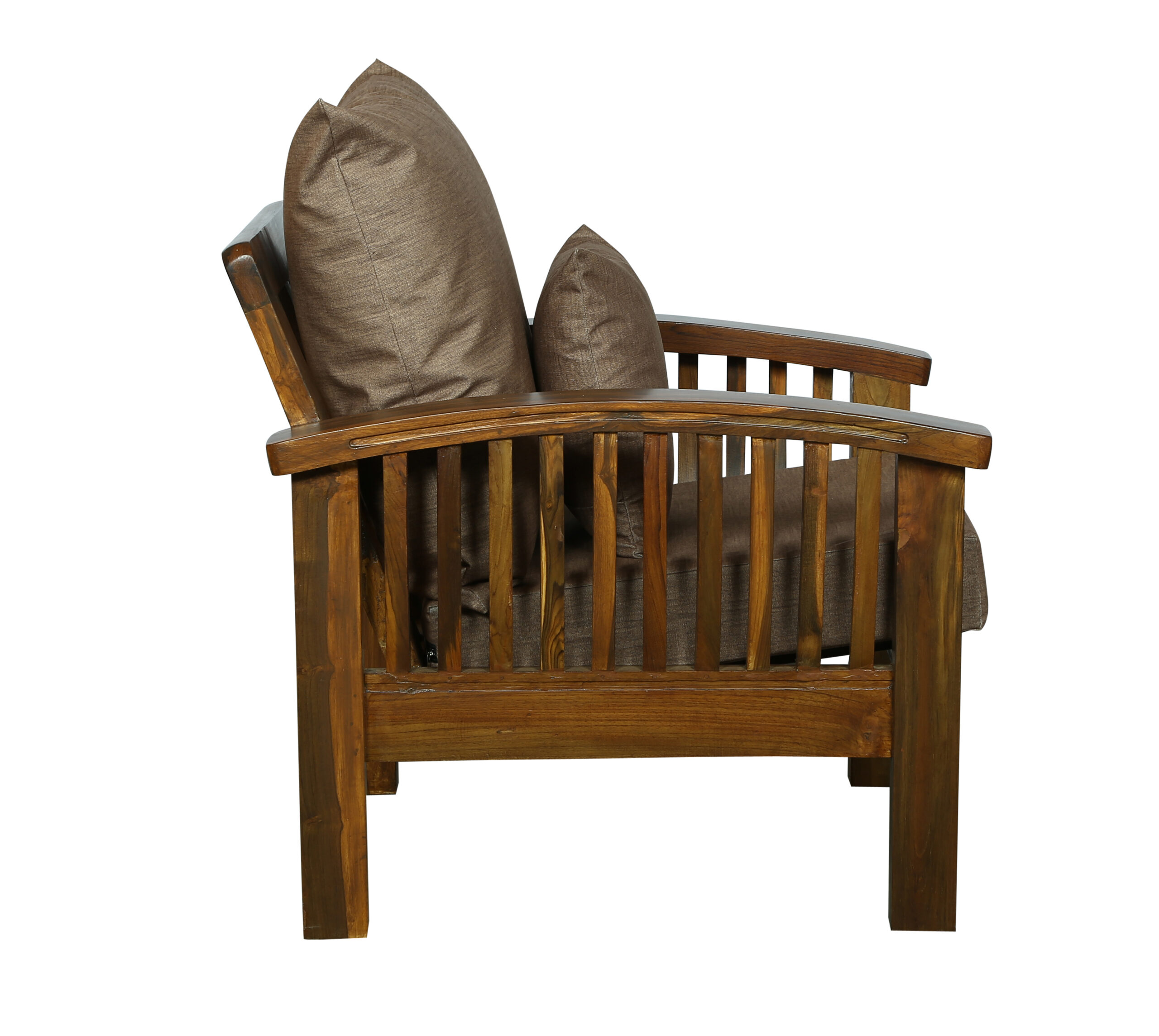 - Color: Wooden Brown |Cushion: Brown | Pillows : Brown