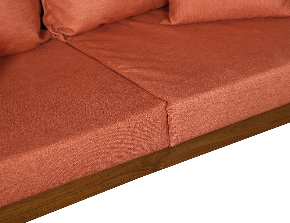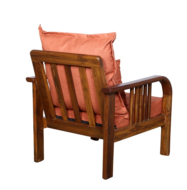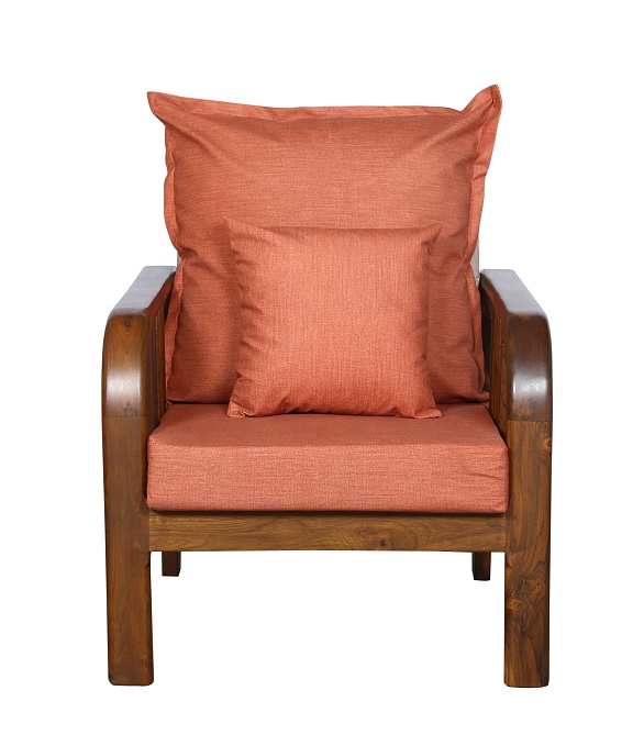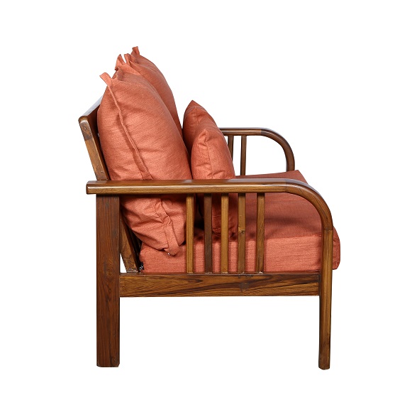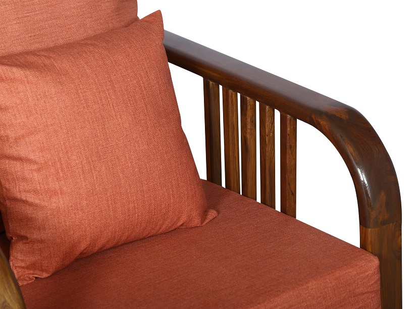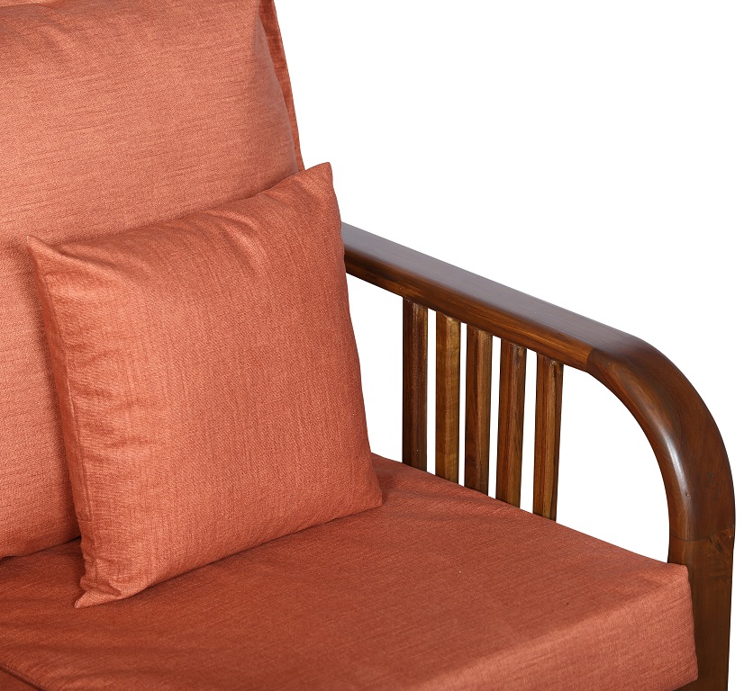 - Color: Wooden Brown |Cushion: Orange | Pillows : Orange