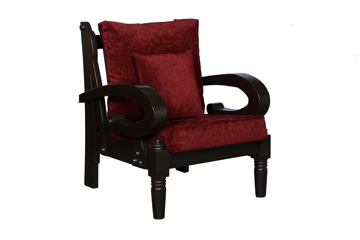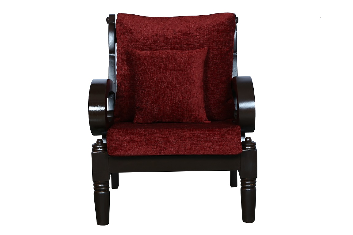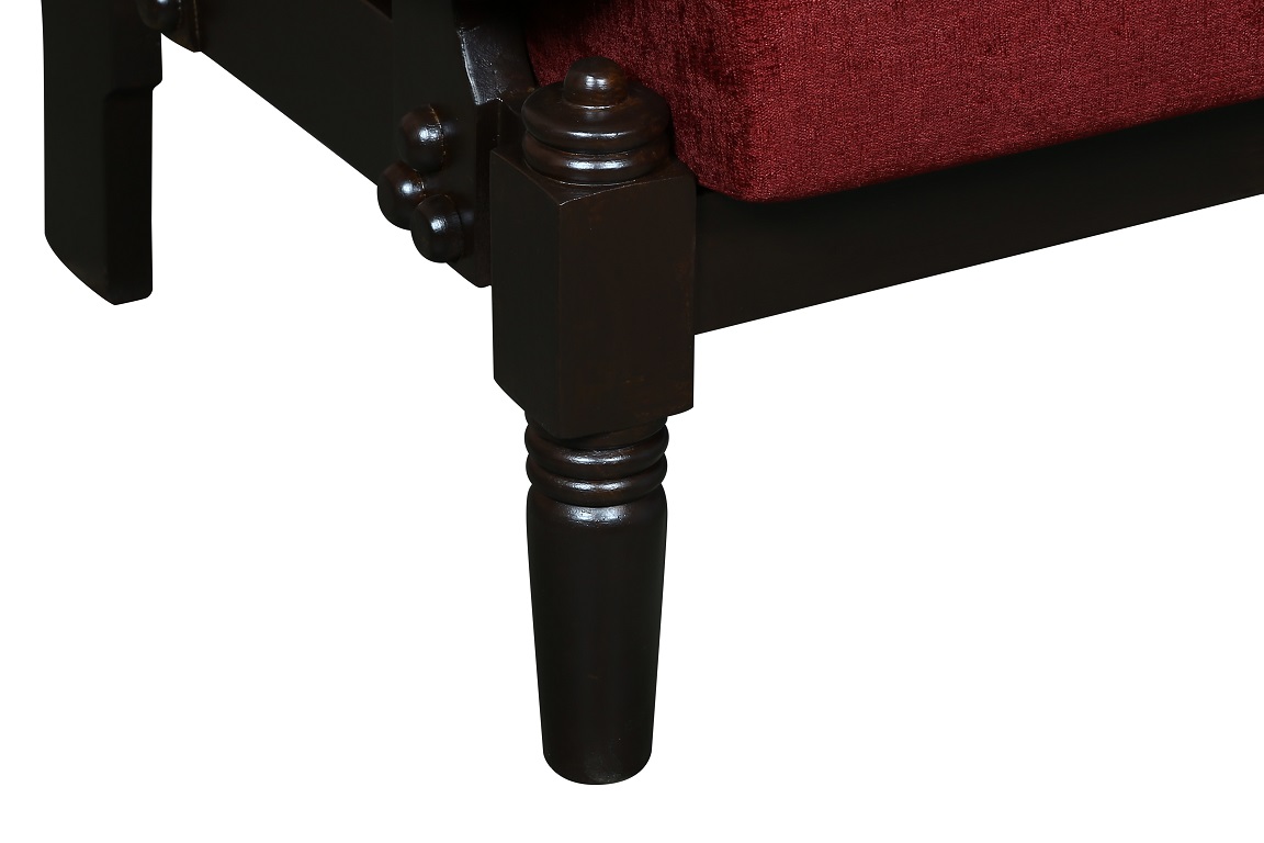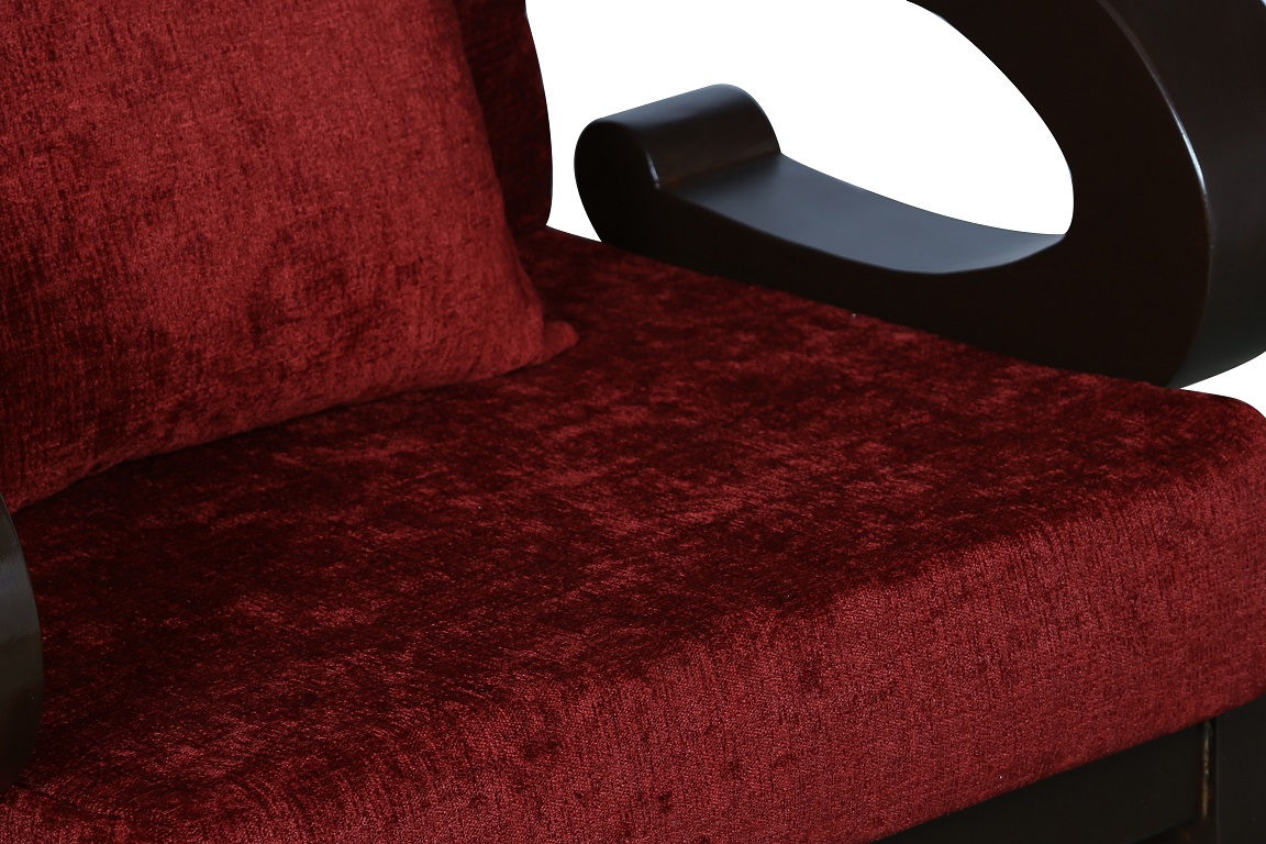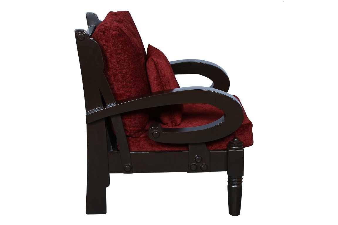- Color: Wooden Brown |Cushion: Maroon | Pillows : Maroon