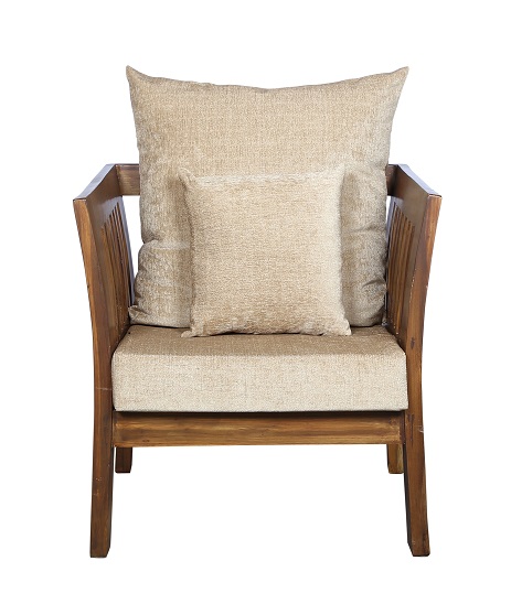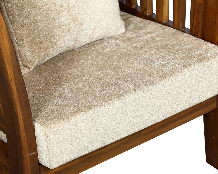- Color: Wooden Brown |Cushion: Ivory | Pillows : Ivory
