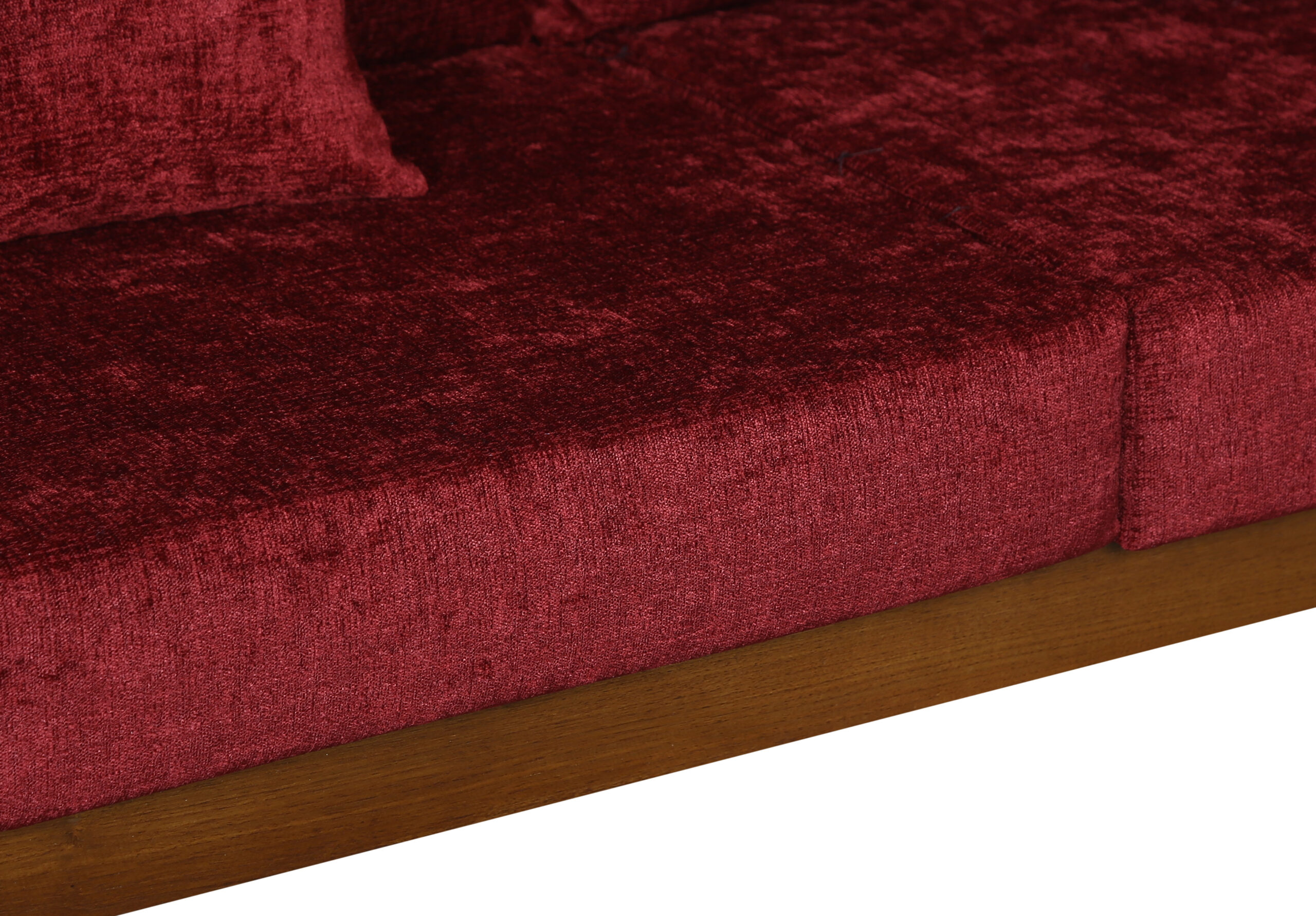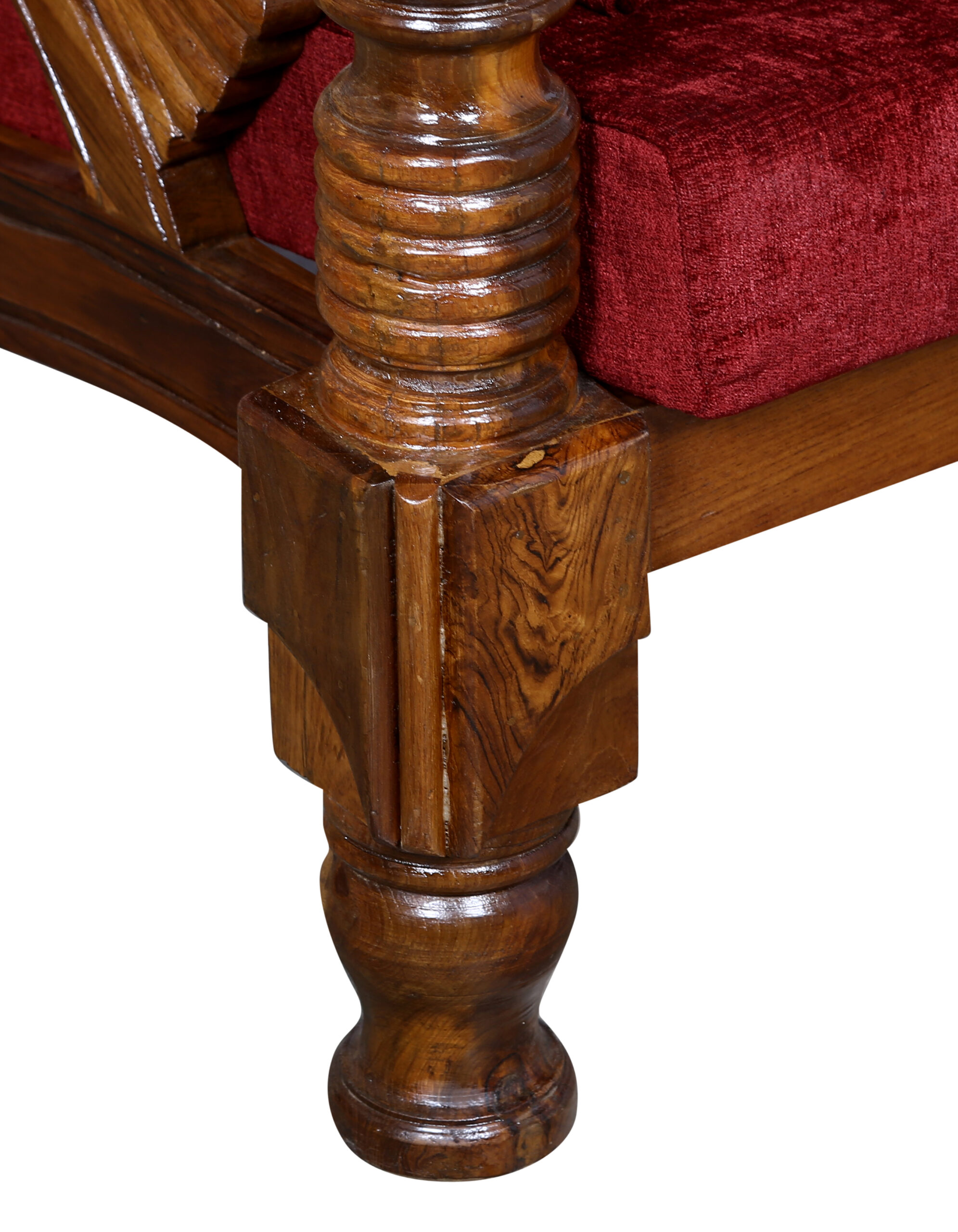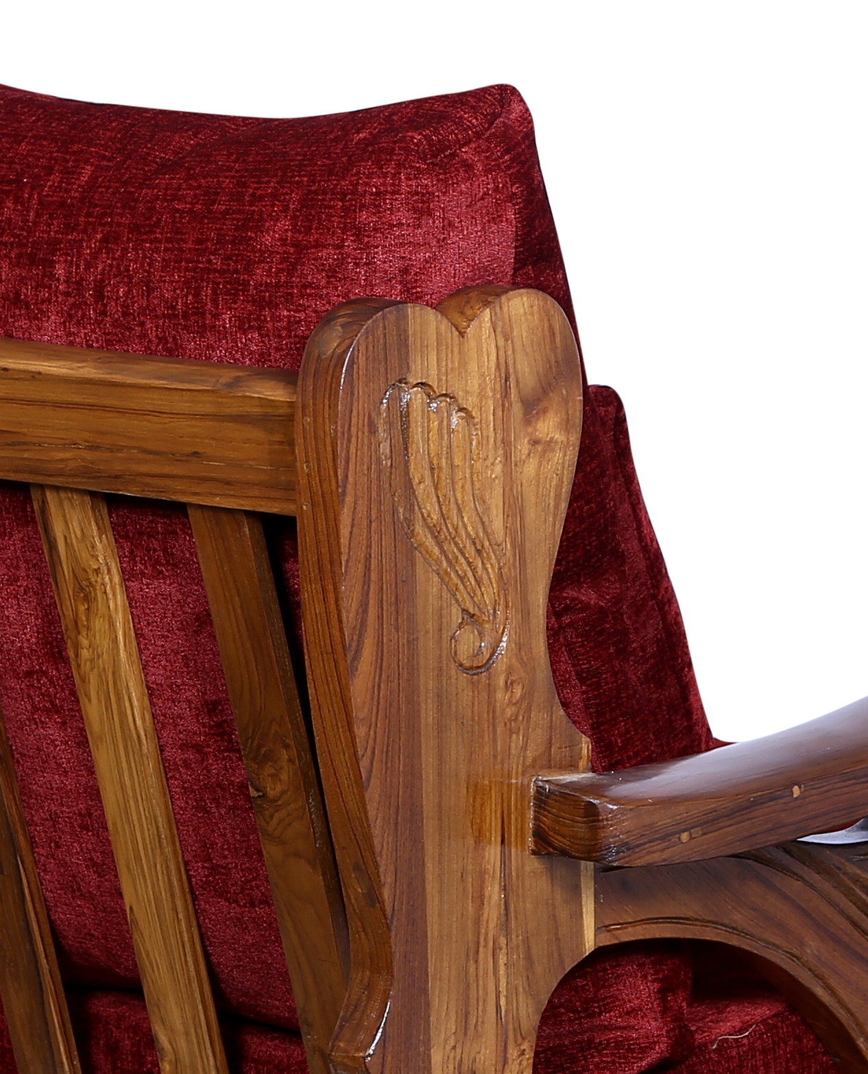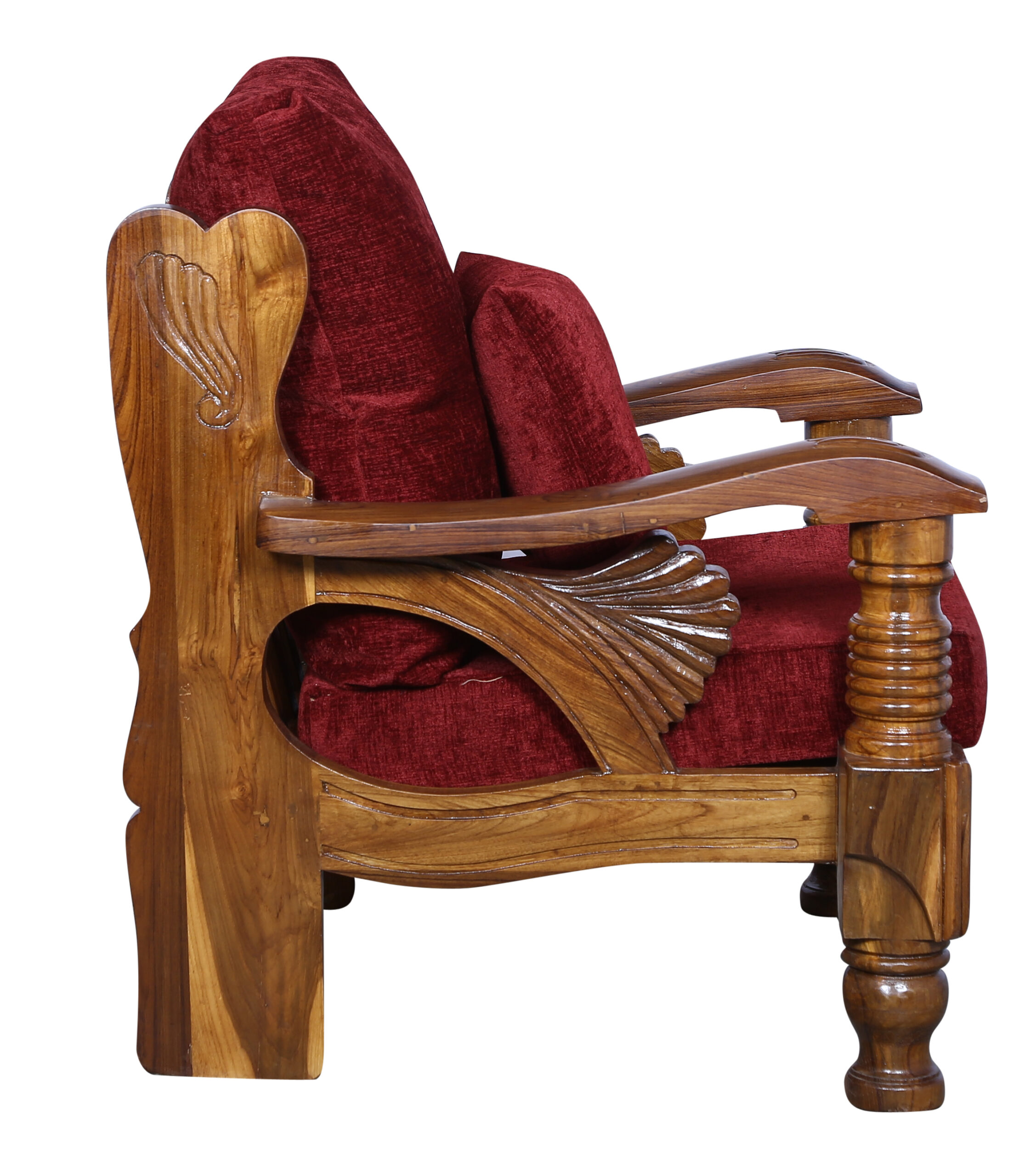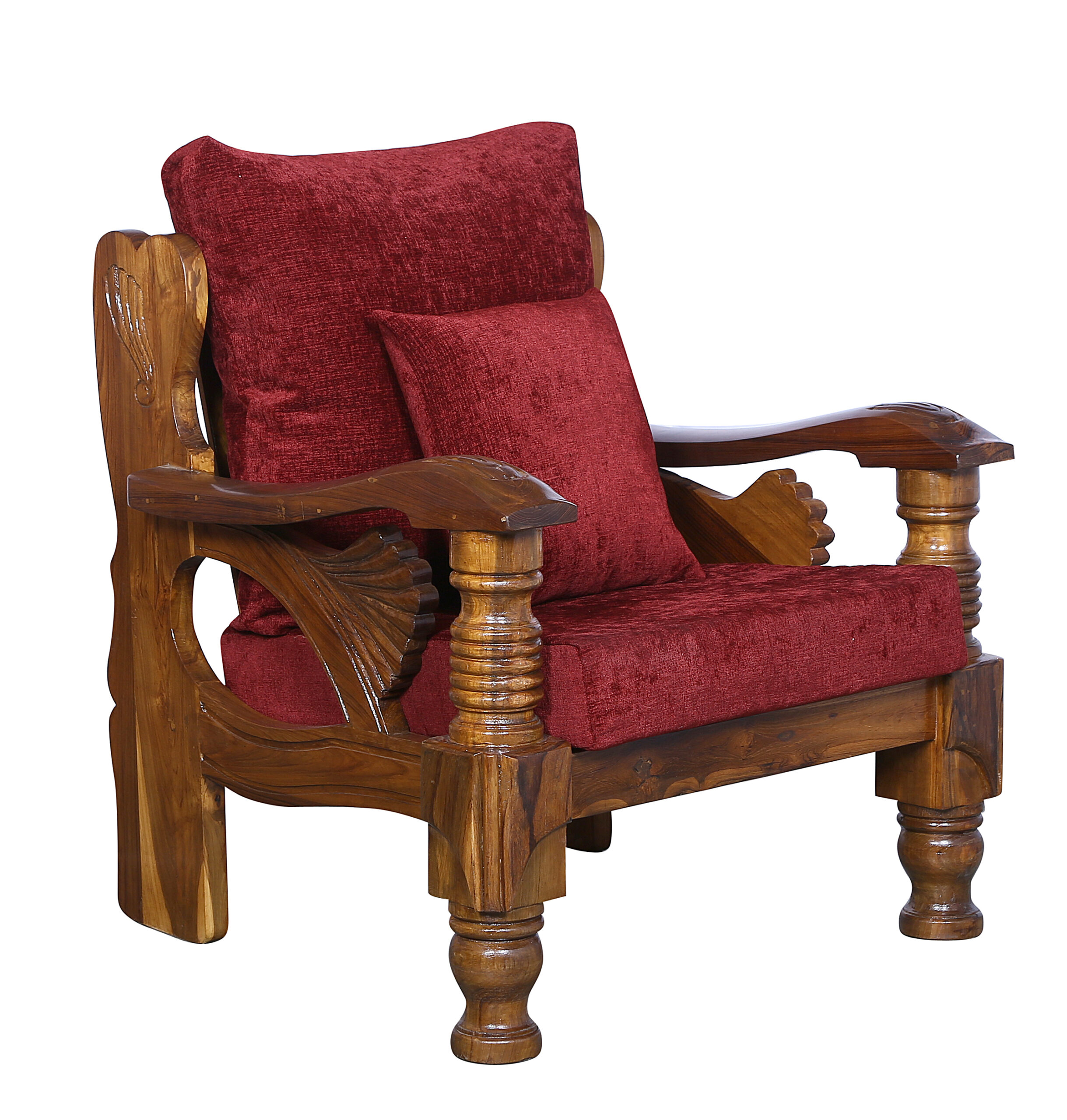 - Color: Wooden Brown |Cushion:Maroon| Pillows : Maroon